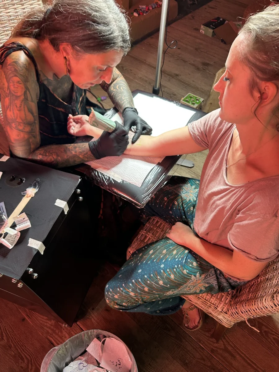 Wir sind Anni und Alice und wir bringen unsere Tattoo-Kunst direkt zu deinem Event. Live, mobil und mitten im Geschehen.